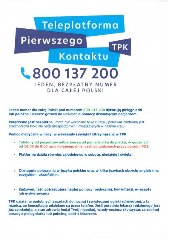 ( teleporada) , jeżeli w trakcie udzielania teleporady okaże się, że istnieje konieczność osobistego zbadania pacjenta, to w takim przypadku uzgadniamy termin porady w przychodni.